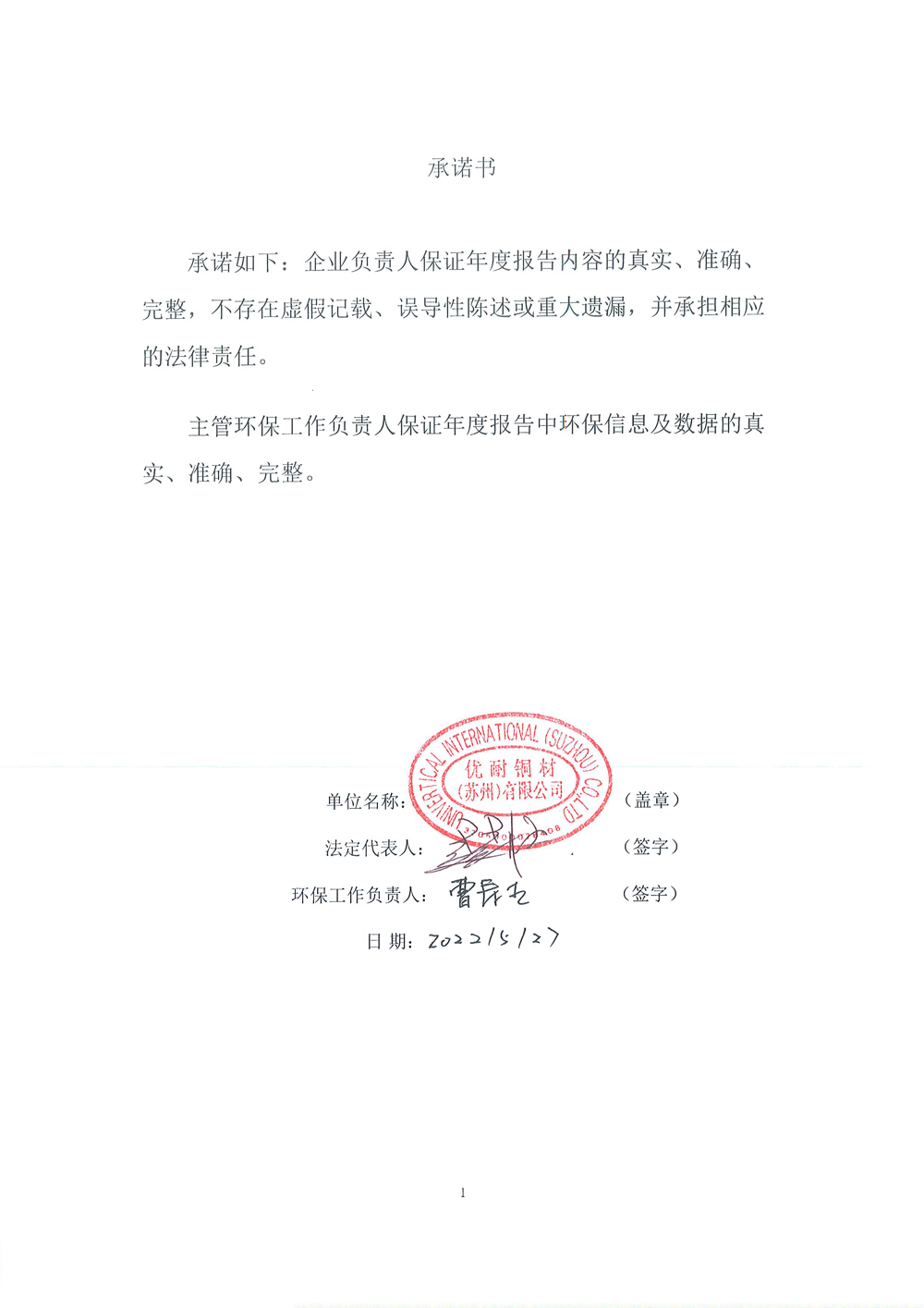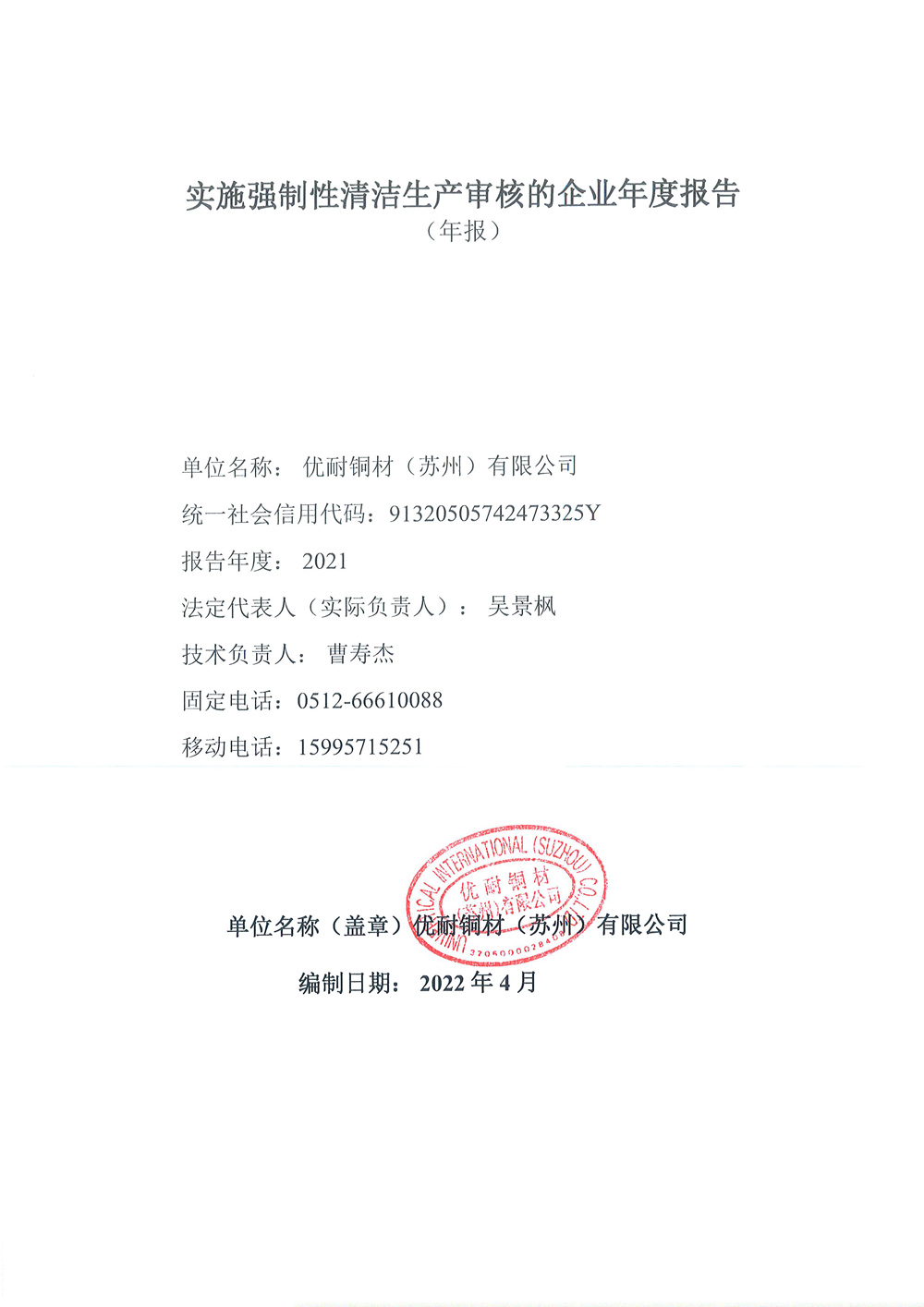 實(shí)施強(qiáng)制性清潔生產(chǎn)審核的企業(yè)年度報(bào)告--優(yōu)耐銅材(蘇州)有限公司